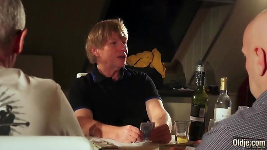 Six oldmen poker players gangabang Twenty-one teeny for a bet