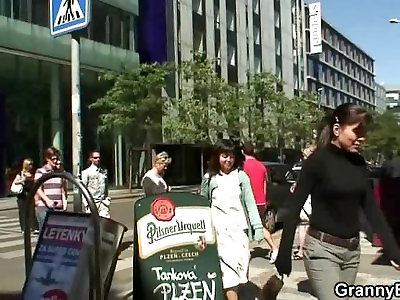 Buxom elderly granny picked up by youthful guy