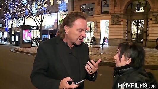 Womanizer picks up young black-haired Blue Star for his romp-greedy acquaintance