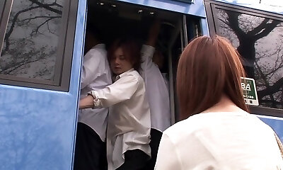 Japanese slut gets packed in a crowded public bus