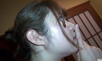 Japanese female employee in lil towel films unfaithful sex