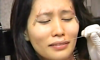 Jap Bbw slave got needles pierced lip to keep her hatch shut
