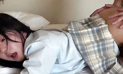 An 18-year-old Lewd Black-haired Japanese Beauty. She Wears A Uniform And Has Hook-up With A Blowjob And Shaven Cooter. Uncensored