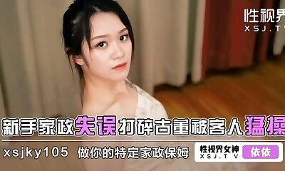 Chinese perv enjoyed to fuck her tight pussy in his apartment