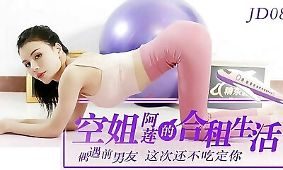 Hot stewardess is an Chinese doll in high heels