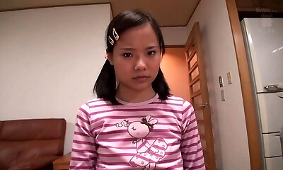 18-year-old cute black-haired Japanese ultra-cutie. She gives a deep throat and has creampie sex in her shaved coochie. Uncensored